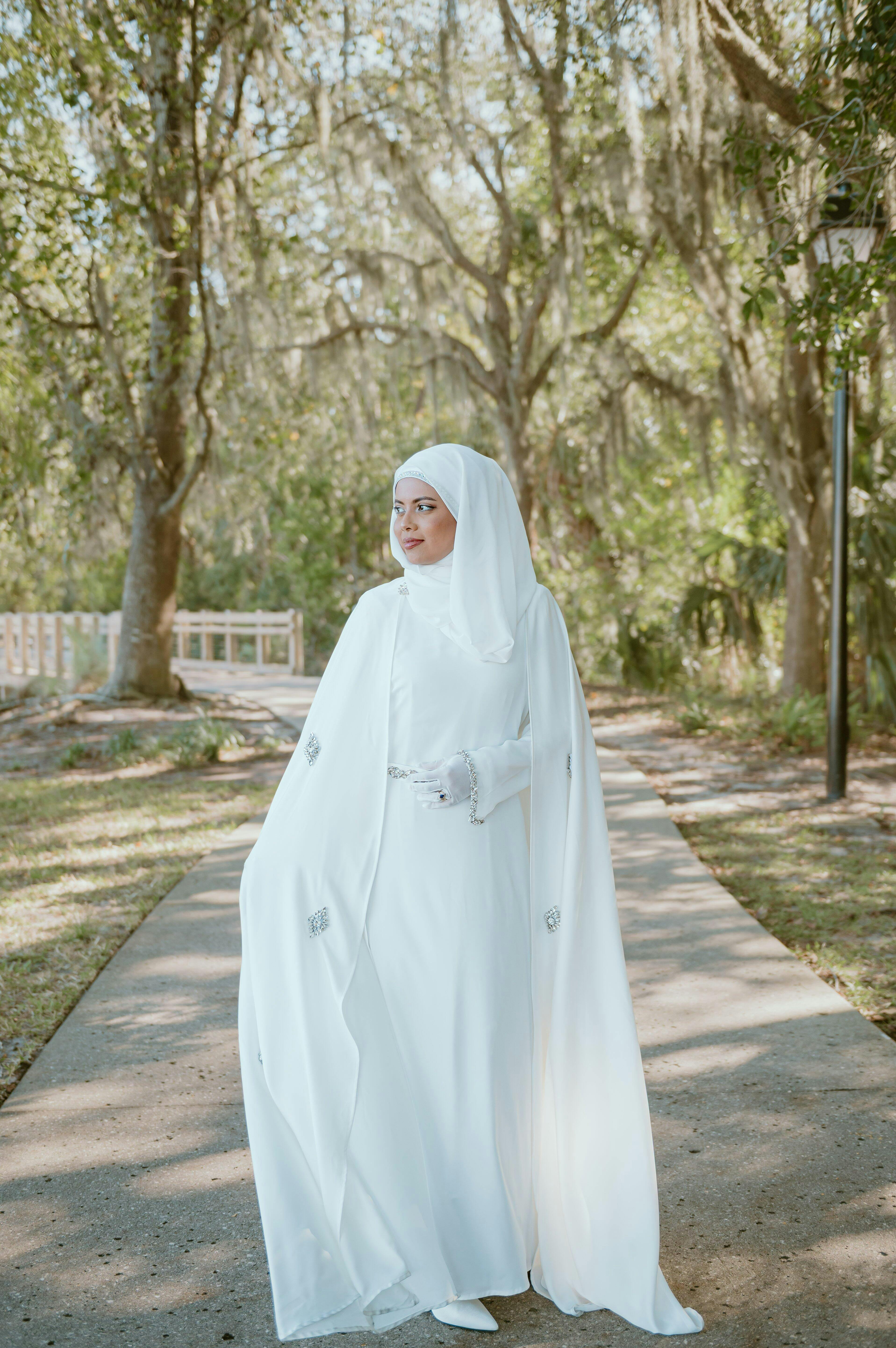 I purchased a wedding dress that were more expensive prior to this and required alterations, and still couldn't fit and feel right. I came across mariam's collection in Instagram and fell in love with this dress instantly. I was skeptical at first, but when it arrived, I was blown away with how well made it was. Beautiful and soft, however it was see through, so I had to buy a liner dress. I also added more diamonds for the belt. I was torn between this dress and the newer cape dress with rhinestone around the front cape. But I'm glad I chose this one, although either one of them would be beautiful I'm sure. I'm still in love with this dress and I'm happy with the fact that I can wear it casually outside without the cape of my wedding day. Thank you for the beautiful dress.